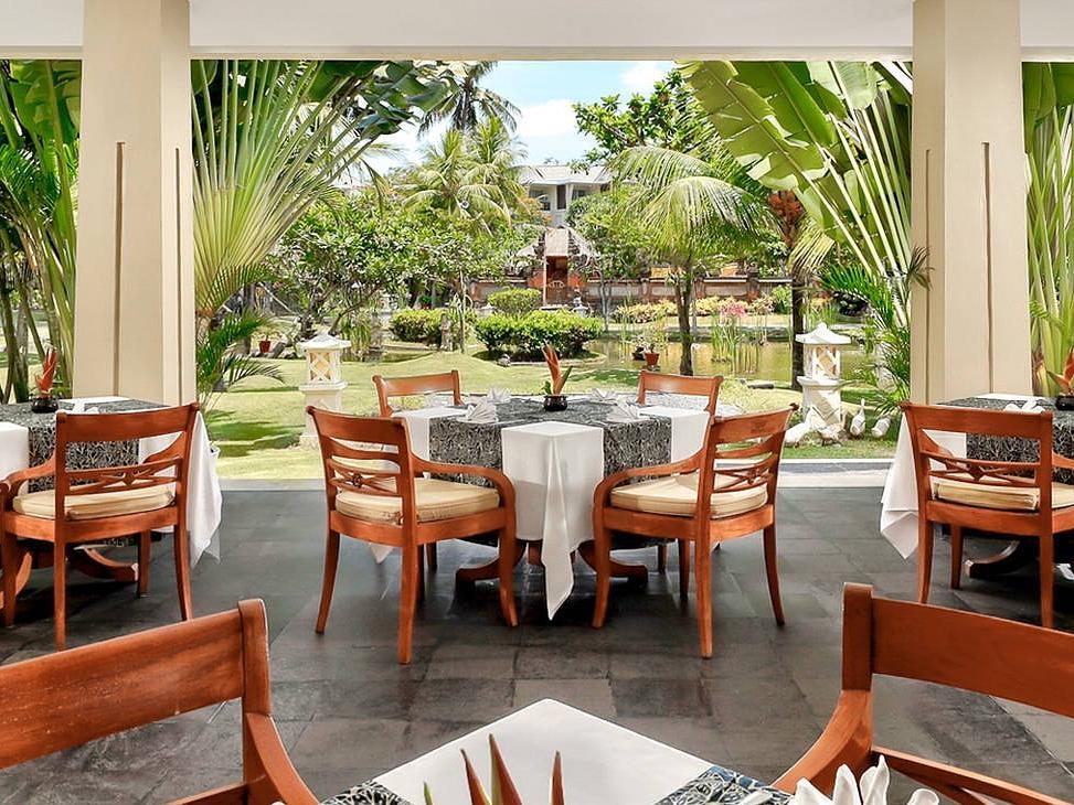 Hotel v Nusa Dua, který je považován za nejlepší plážovou lokalitu na Bali a zároveň je vzdálen od hlučných letovisek. Na letiště je to necelých 10 km a do Kuty (s širokou nabídkou obchodů, restaurací, barů a další zábavy) asi 15 km - dostupný taxíkem za cca 15 USD. Vedle hotelu se nachází 18jamkové golfové hřiště a nákupní centrum Bali Collection. |