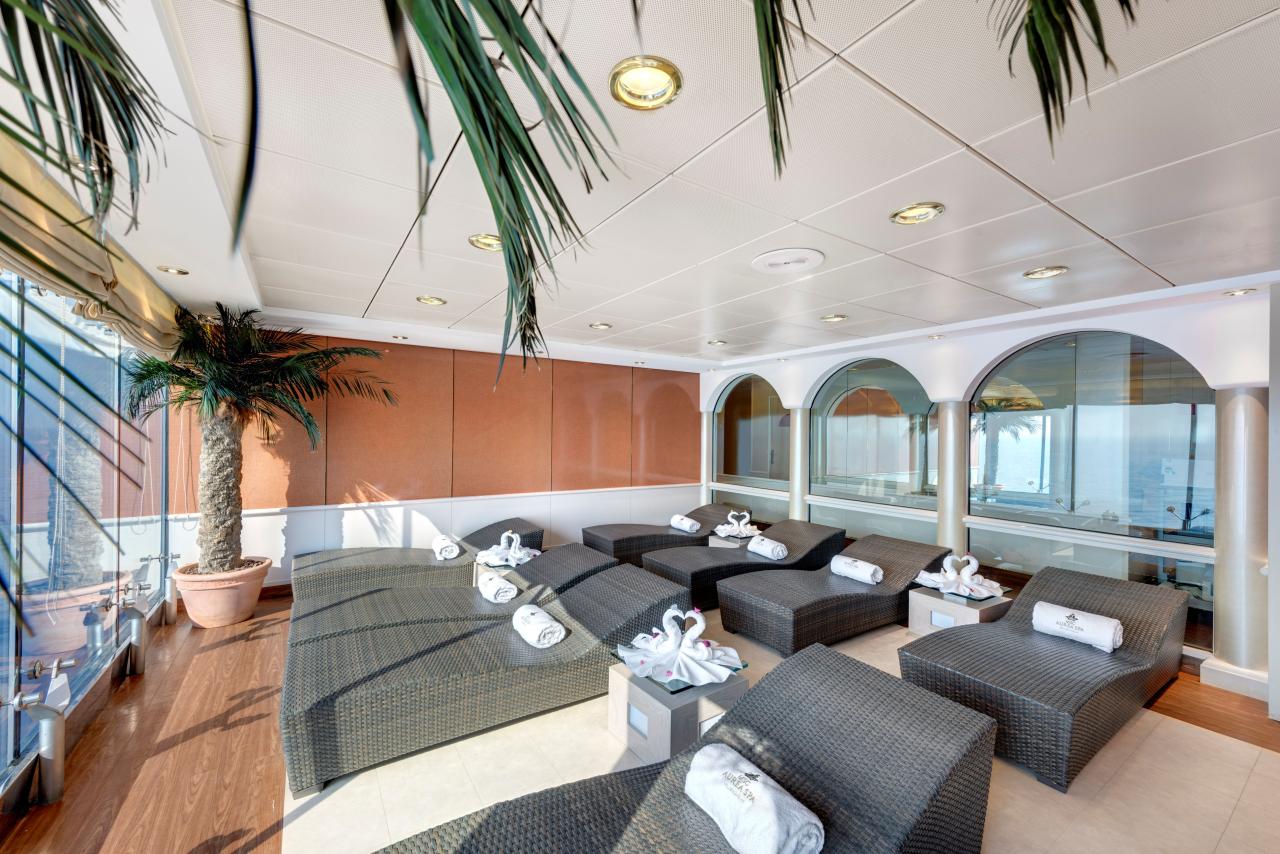 | Na lodi je k dispozici:Restaurace např. La Caravella Restaurant, L´Approdo Restaurant, Bary a salonky např. La Cabala Piano Bar, Aroma Coffee Bar, Cotton Club s živou hudbou, venkovní Lo Spinnaker Bar Divadlo Teatro dell'Opera, Med Pearl Casino, diskotéka Byblos MSC Aurea Spa - autentické balijské a turecké lázně, sauny i mnoho nejrůznějších kosmetických procedur, manikúra, pedikúra Fitness centrum - aerobik, pilates, spinning a vodní spinning, kondiční programy na míru, kvalifikovaný osobní trenér Dráha na jogging, venkovní hřiště na basketbal, fotbal a volejbal, tenisové kurty Squash, ping-pong, stolní fotbálek Minigolf, mini bowling Dětský areál - Lego park, zábavní park s vodotrysky, Baby klub pro mladší tří let, Mini Lego klub, Teens klub Internetová kavárna, knihovna Videoherna Butiky Ordinace lodního lékaře |