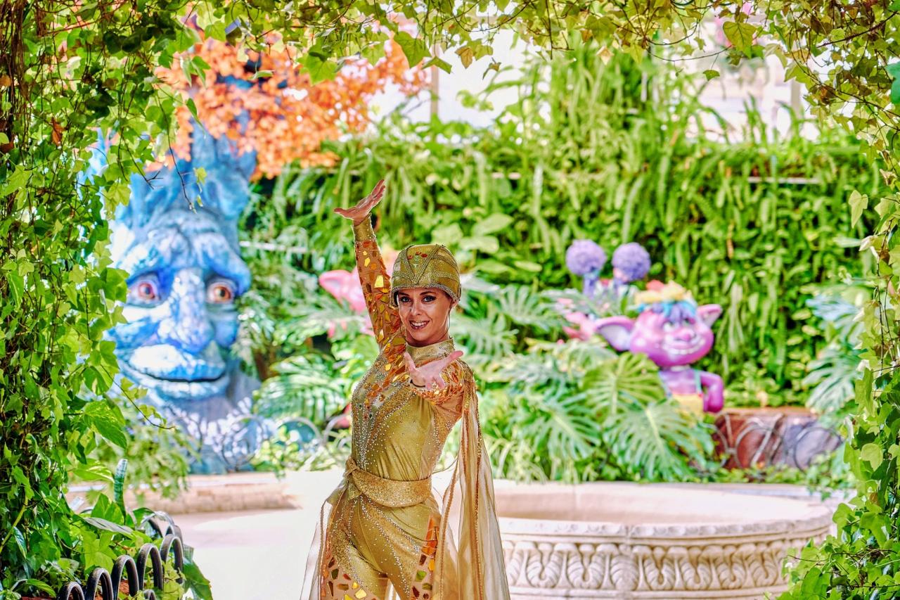 Přeneste se do světa snů a vstupte do pohádkové zahrady plné fantazie. Objevte malé skřítky schovávající své poklady, víly tančící mezi okvětními lístky i moudré stromy, které dokážou promluvit. Čeká vás velkolepá show, kde se představí i kouzelný jednorožec Rouge, jeden z maskotů Magic World Resortu.